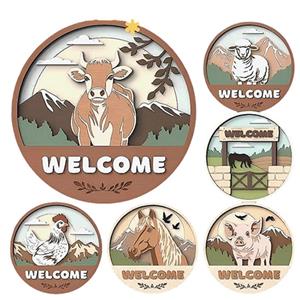 Cute Animal Farm Wooden Welcome Sign: A Charming Addition to Any Home A cute animal farm wooden welcome sign brings
