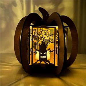 Handcrafted Halloween Lanterns: Custom Wooden Pumpkin Light Decor for Spooky Parties