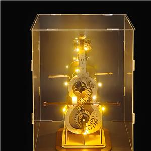 The Secret Cello Music Box is a DIY wooden 3D puzzle that replicates the elegance of a classical cello. With dimensions of 37cm x 18.5cm x 5.5cm, this model is designed for young adults aged 15-35. It features two thematic options: “Meet” and “Castle in the Sky,” with optional LED light strips and acrylic displays for enhanced visual appeal.