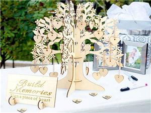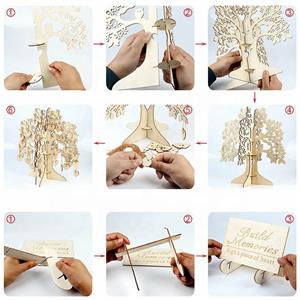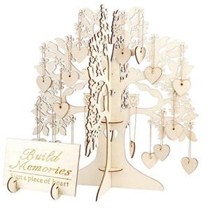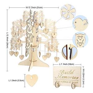 Package: 1 piece wooden tree frame + 100 pieces wooden signature heart + 100 pieces hanging rope + 1 piece welcome board.