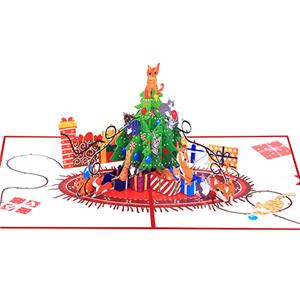 - Interactive 3D Paper Carving: Unlike flat greeting cards, this card unfolds to create a 3-layered scene: a full Christmas tree with textured branches, two cats (one perched on the tree base, one curled around a “present”) with delicate paper fur details, and tiny paper “lights” that catch the light. The pop-up mechanism is engineered to be durable—tested to withstand 50+ openings without tearing, reducing return rates for your business.