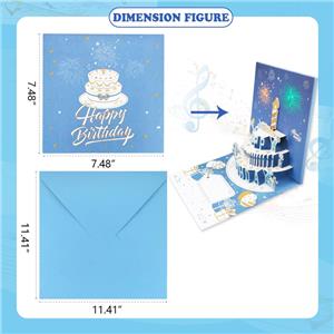 【Play Music】The 3D music birthday card shows a cake with LED light-up candles, just like real candles. When playing, you will hear the cheerful “Happy Birthday” cheers, and then the birthday song will automatically play. Like a traditional candle, pay attention to the marked points where you blow. This isn’t an ordinary music card; it’s a heartfelt gesture to show you care about their special day with a 3D pop-up birthday music card!